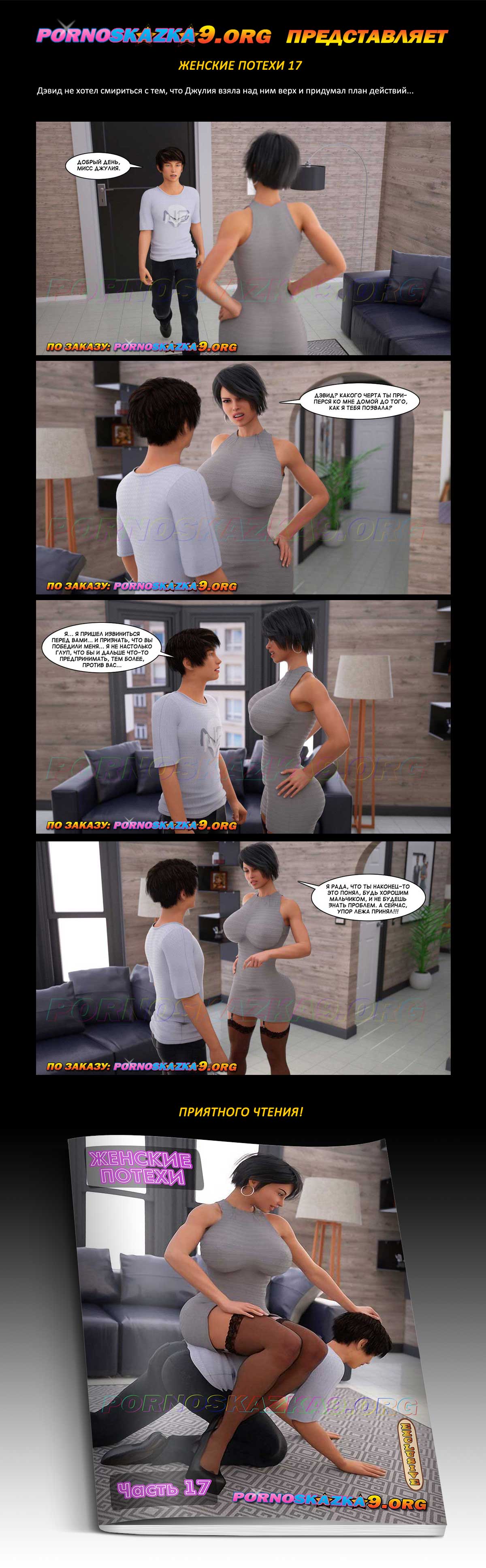 Порно комикс «Женские потехи. Часть 17». Дэвид не хотел смириться с тем, что Джулия взяла над ним верх и придумал план действий…